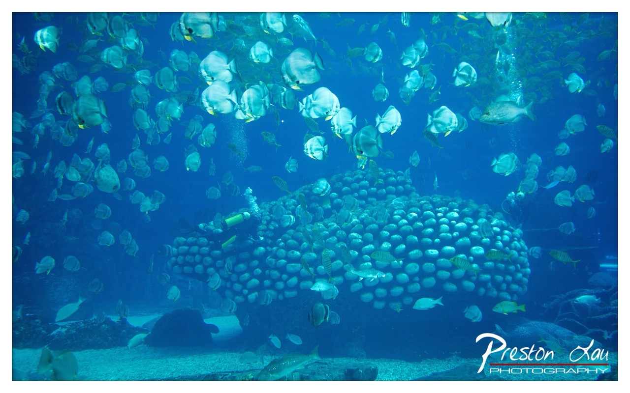 The photographer captures a familiar aquarium scene with a sense of wonder, using the density of fish and the scale of the coral to evoke a feeling of awe. While not radically original, the composition conveys a quiet narrative of underwater life.