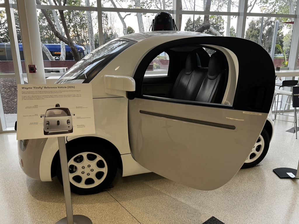 In the front lobby area of the Computer History Museum, there is also a Waymo (part of Google) self drive car, called Firefly. Google initially designed the Firefly back in 2013. From the start, the car was intended to be an experiment that would allow engineers to explore different ideas about how autonomous vehicles should work or be configured, they said. Although it was seen all over the place in cities like Mountain View while Google was testing it, the Firefly was never intended to be a production vehicle. Along the way, the Firefly racked up some impressive achievements for the development of autonomous vehicles, including million of miles driven and the first completely autonomous trip. Visitors are allowed to get in the Waymo and try out the ride the auto seldrive car. Pretty cool!