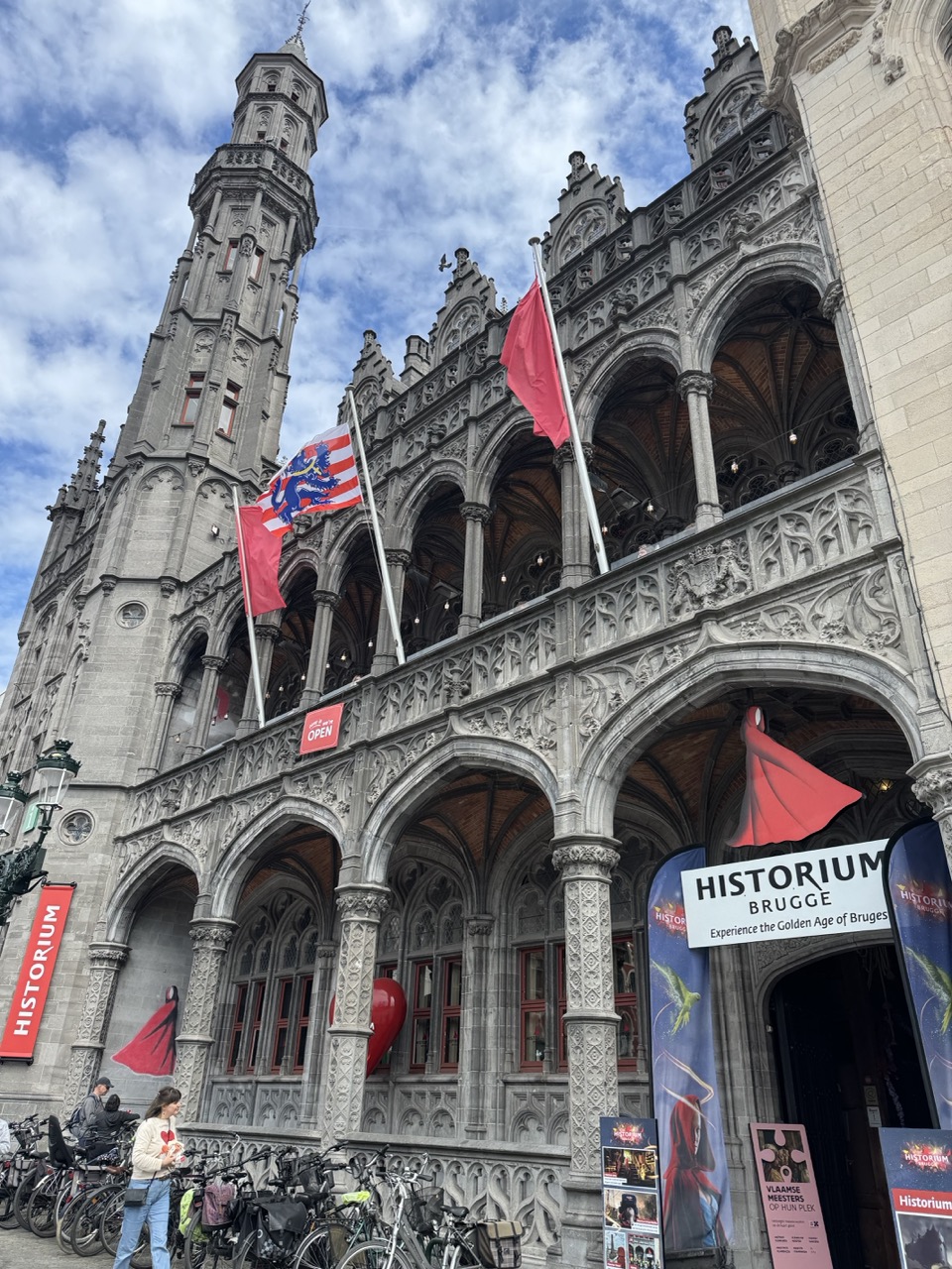 At the heart of the old town you will find two main squares: the famous Markt Square and the smaller Burg Square. The Markt is easy to locate thanks to its most famous landmark, the impressive 13th-century Belfry of Bruges. Just a short walk from the Markt sits the square in front of Historium, the immersive medieval experience museum that occupies one of the most striking buildings on the entire waterfront. Even if you do not go inside, the square itself is worth pausing at. It opens up onto the canal at Rozenhoedkaai, widely considered the most photographed spot in all of Bruges, where the Belfry rises dramatically in the background and the water below reflects the stepped gable rooftops in that quiet, mirror-like way that makes you reach for your camera before you have even consciously decided to.