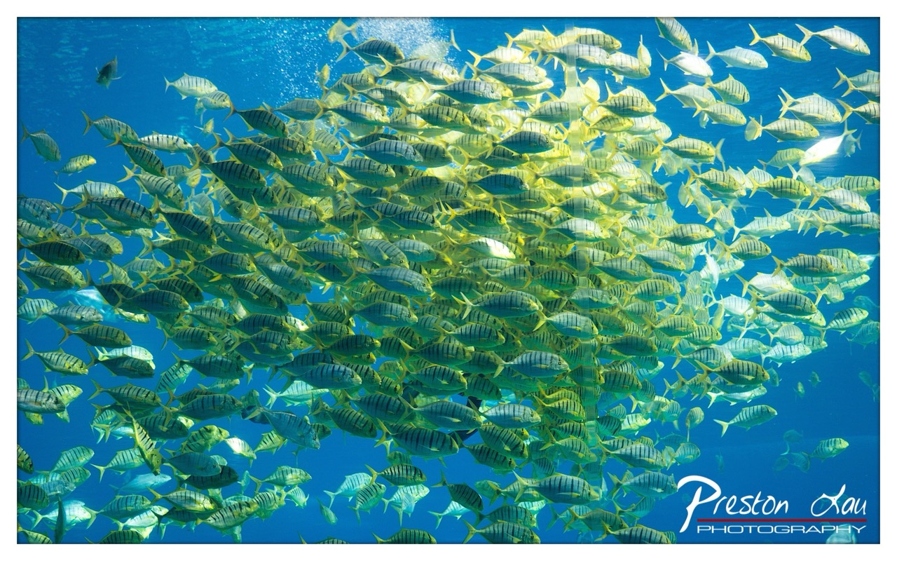The photographer captures a familiar aquarium scene with a sense of wonder, using the density of fish and the scale of the coral to evoke a feeling of awe. While not radically original, the composition conveys a quiet narrative of underwater life.