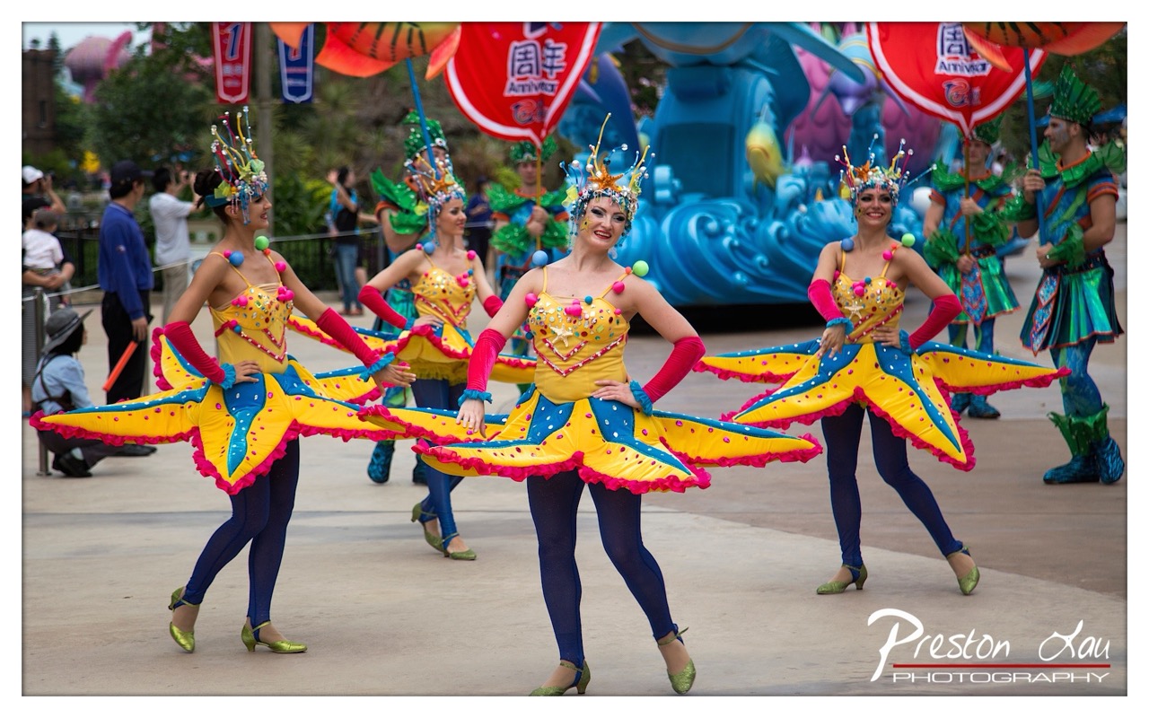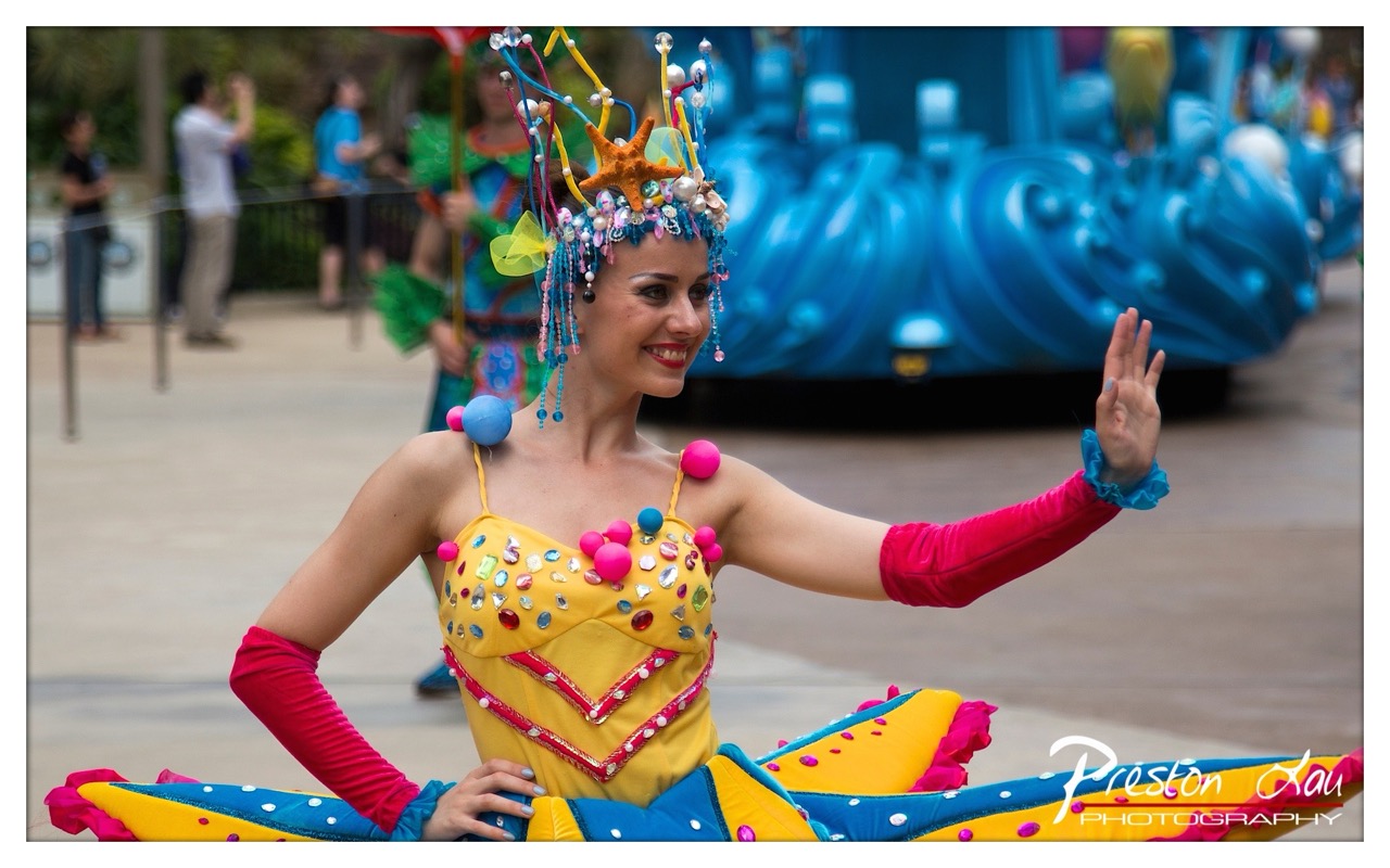 The concept of transforming performers into starfish is imaginative and thematically consistent with the parade’s underwater motif. The photographer captures both the choreography and the whimsical design of the costumes, elevating the scene beyond mere documentation into a celebration of performance art.