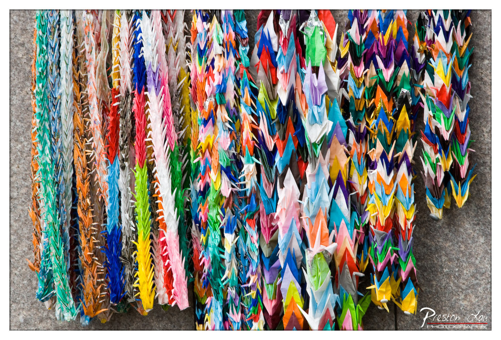 The image transforms a simple cultural artifact into a visually compelling study of pattern and color. By focusing on the repetitive form of the cranes, the photographer elevates the mundane into something poetic, suggesting themes of hope, peace, and human connection.