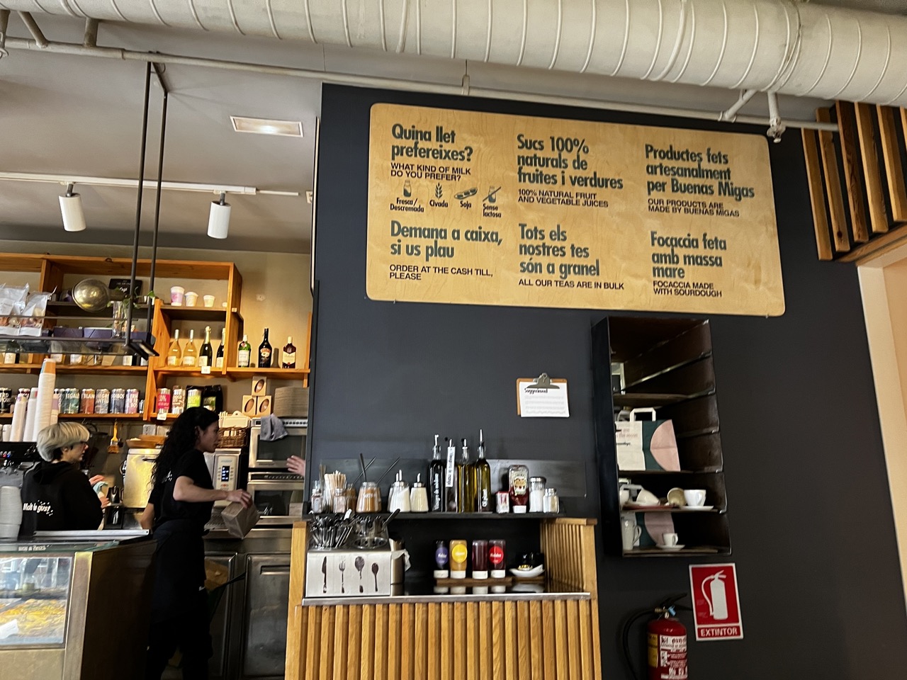 Stopped by the Buenas Migas Italian coffee shop (address: Pl. d'Espanya, 6, 8, 08014 Barcelona, Spain) for a quick coffee. A nice cozy place with great view and tasty food.