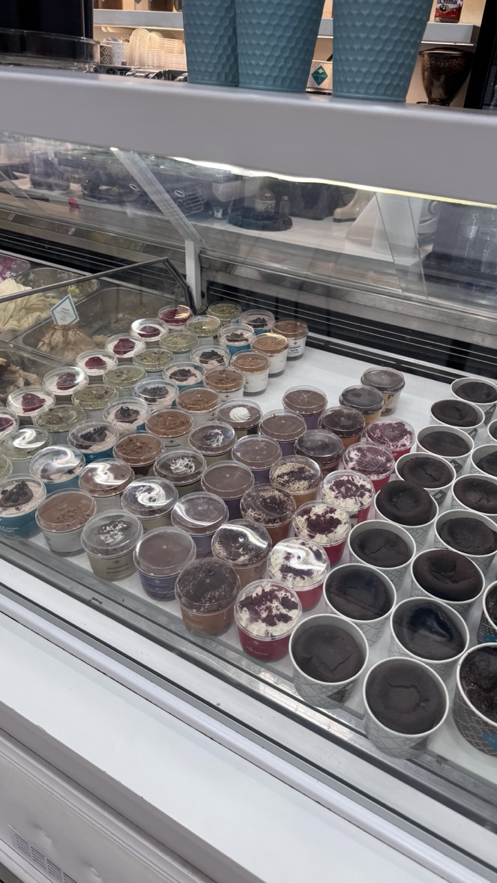 This photograph captures the inviting abundance of a gelato or dessert display, where a wide array of flavors invites indulgence. The composition feels cluttered and slightly chaotic, yet the sheer variety of textures and colors creates a sense of sensory richness. While the image succeeds in conveying the appeal of a dessert counter, it lacks the compositional refinement to feel truly artistic—its strength lies in its documentation rather than its visual storytelling.