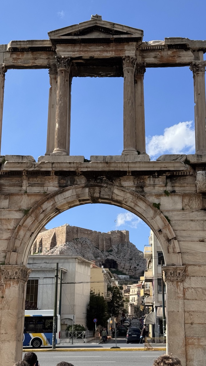 The image is sharp and well-focused, with clear texture in the stone columns and clean edges. The exposure is generally balanced, though the sun’s brightness causes a minor loss of detail. The camera appears to have captured the scene with good dynamic range and minimal noise.