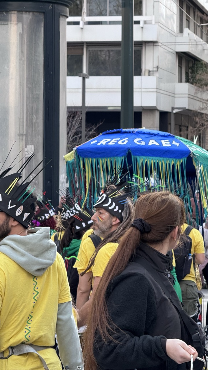 The subject’s animated expression and vivid costume evoke a sense of joy, defiance, or performance, inviting curiosity about their role in the event. The viewer is drawn into the moment, feeling the energy of the crowd and the confidence of the central figure.