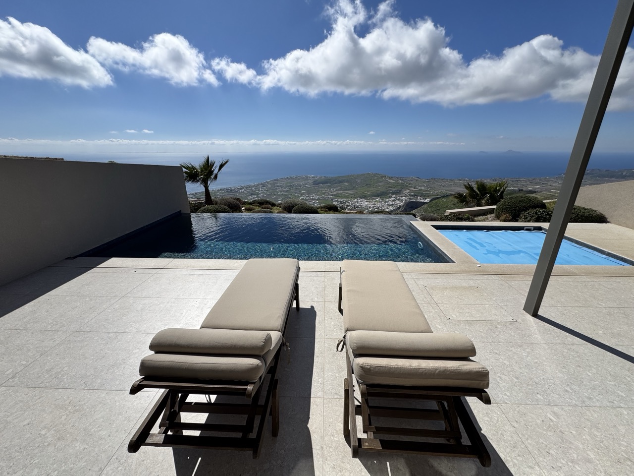 The image leverages a classic luxury travel photography trope—the expansive view from a private pool—but executes it with precision and elegance. While not groundbreaking in concept, the careful balance of composition and light gives it a refined and memorable quality.