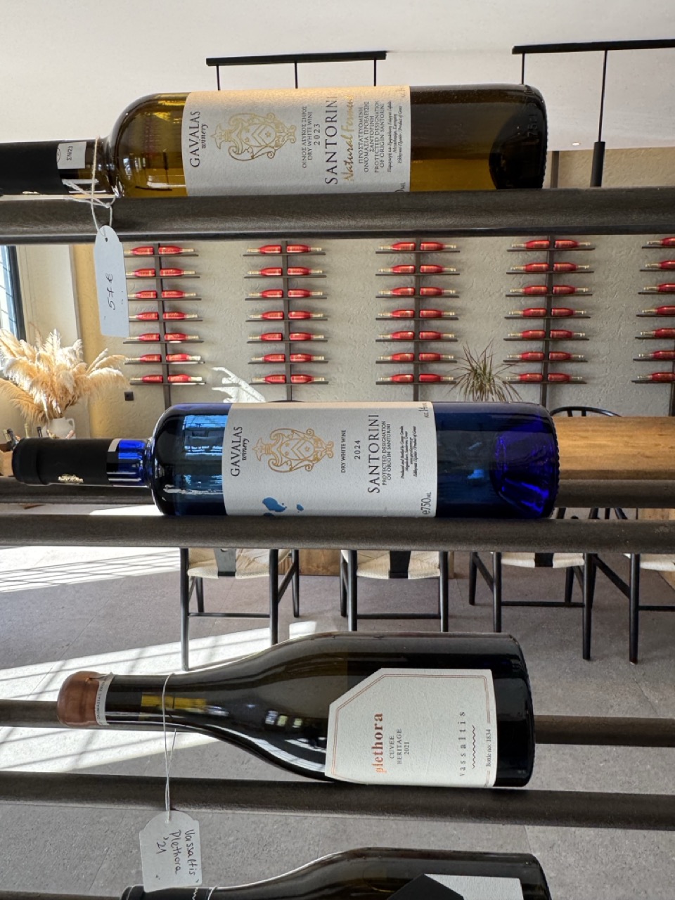 This photograph captures a serene moment in a sun-drenched Mediterranean setting, where the quiet display of handmade jewelry harmonizes with the timeless architecture of Santorini. The composition balances the intimate detail of the gallery’s offerings with the expansive beauty of the caldera in the distance, creating a sense of place and purpose. While the lighting is slightly flat and the framing feels casual, the image succeeds in conveying both the artistry of the pieces and the soul of the location.