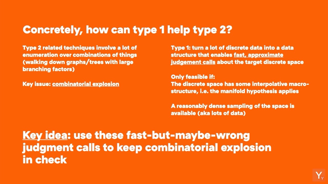 I really don't think you're going to go very far if you go all in on just one of them. Human intelligence combines perception and intuition together with explicit step-by-step reasoning. We combine both forms of abstraction in all our thoughts and actions.
