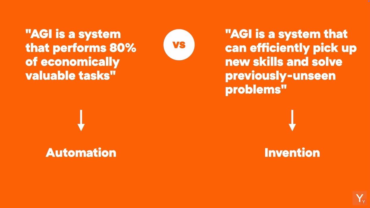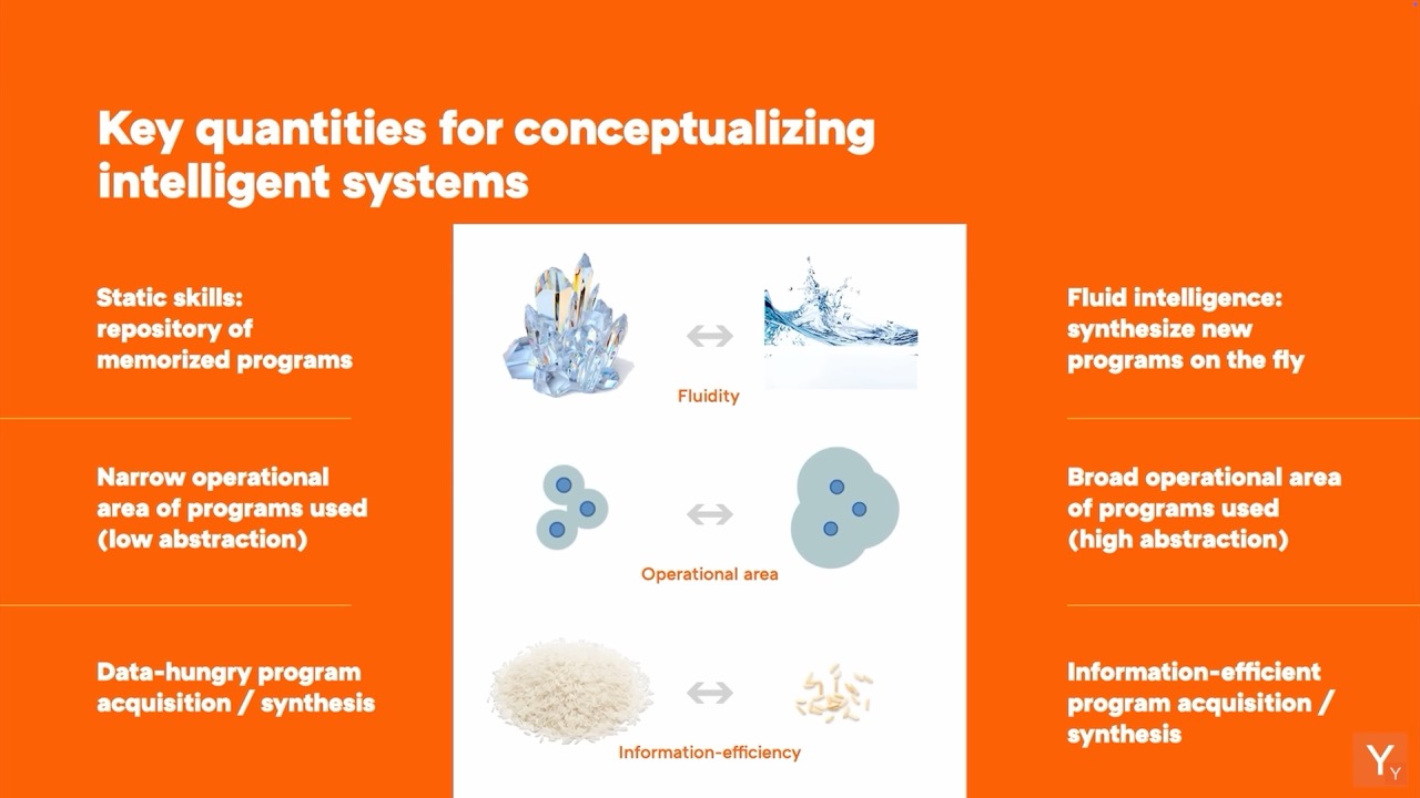 There's a big difference between memorized skills, which are static and task-specific, and fluid general intelligence — the ability to understand something you've never seen before on the fly.
